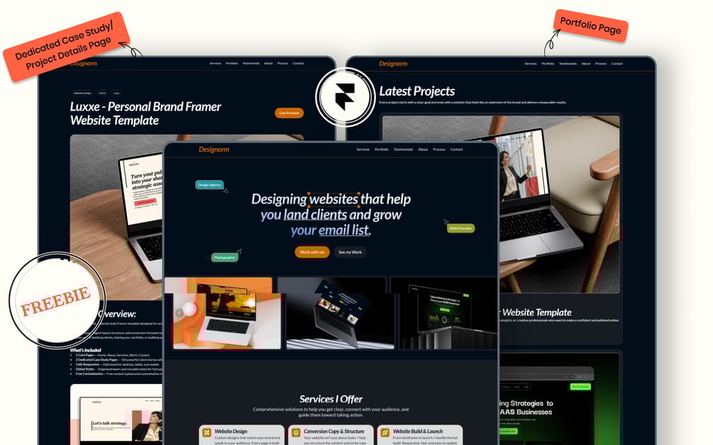 A clean and customizable Framer portfolio template built for designers, creatives, and freelancers who want to showcase their work without wrestling with layouts or code.