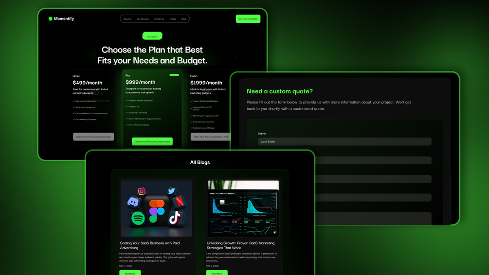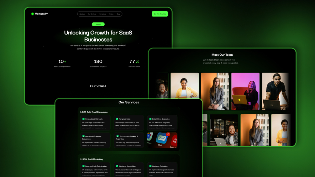 With conversion-optimized copy, engaging micro-interactions, and a modern, responsive design, Momentify ensures your website looks stunning and works hard to grow your business.